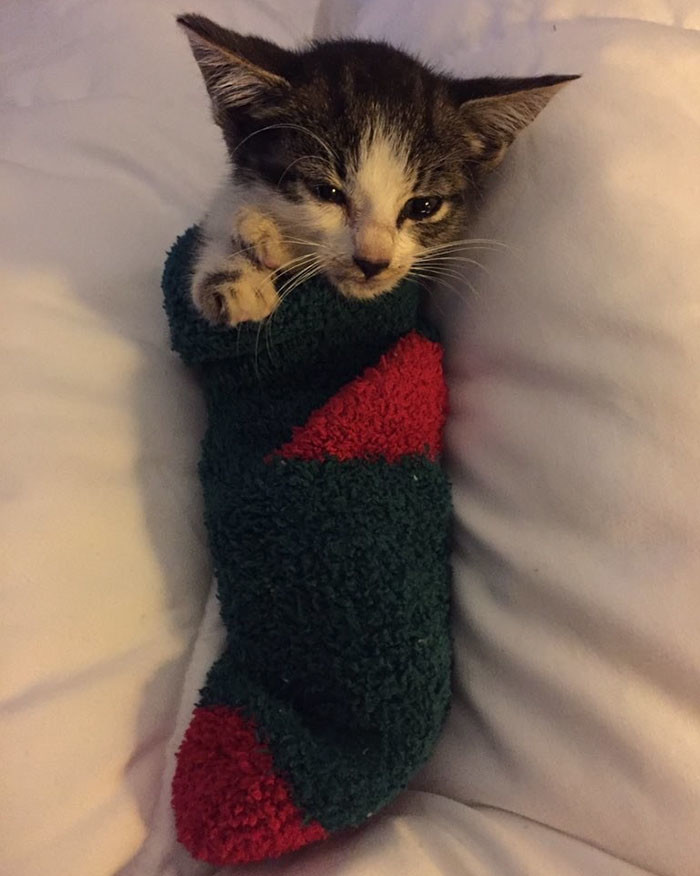 "Если бы мы не взяли ее домой, она бы уже давно умерла. Это была просто кожа да кости," - рассказывает девушка. У Даниэль уже был красивый кот Сагуа, который и стал отцом рождественских котят.