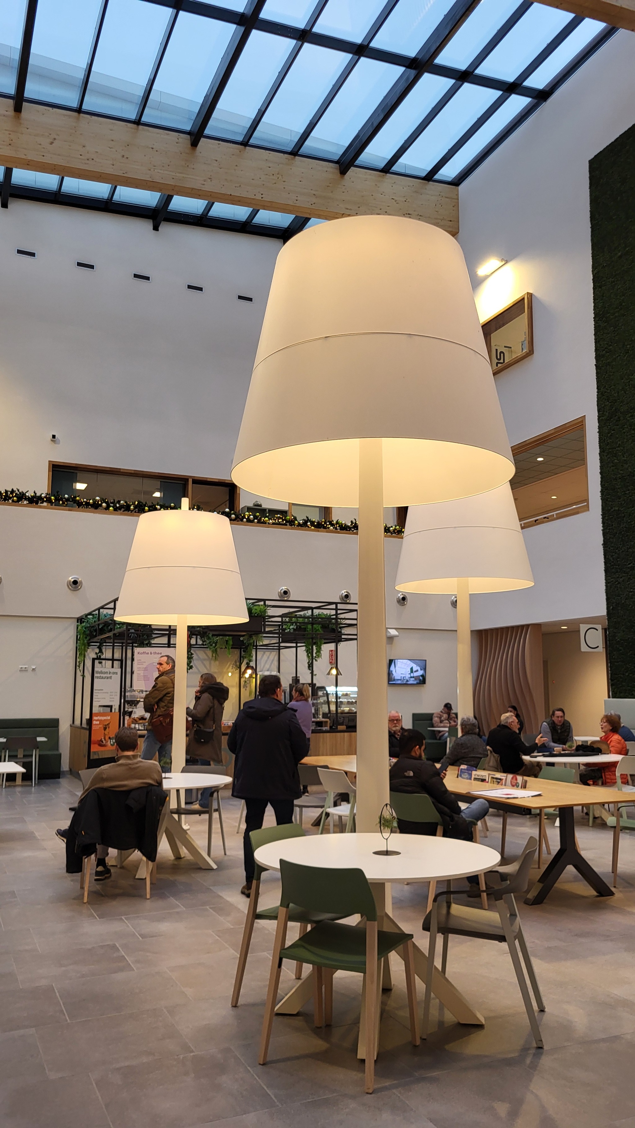 Сегодня ходила с мужем в больницу (у него с плечом проблема), там уже вовсю рождественское настроение создано - в Голландии Рождество главнее Нового года. Сделала фото. Люди сидят в зале ожидания. Выходят врачи, называют фамилию пациента и идут с ним в кабинет. Через минут десять вызвали и нас. Пока сидишь, ждешь, можно кофе купить с булочкой, но очень дорого: бокал капучино 4, 25 евро. Я дома дешевле и вкуснее пью.