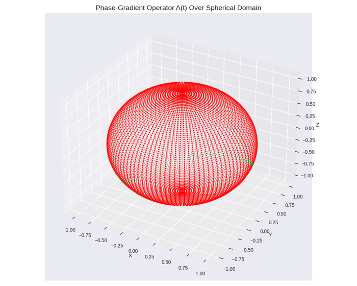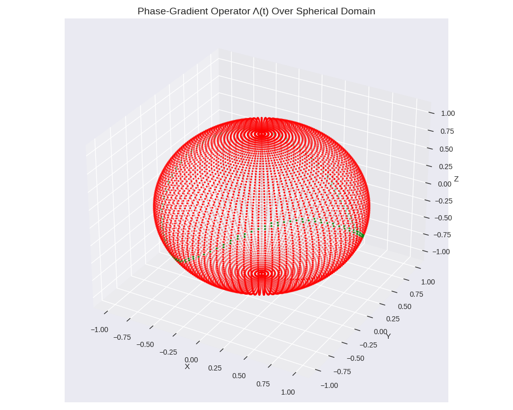 Как это работает: Оператор Λ(t) объединяет три динамических элемента в единый градиент. Первый — это a(t), амплитуда, которая показывает, насколько сильно объект реагирует на окружение. Второй — φ(t), фазовая ориентация, определяющая, как он выравнивается с окружающим полем. И третий — w(t), вес когерентности, который отвечает за стабильность его структуры. Вместе они позволяют объекту изменять свою форму в реальном времени не за счёт силы или инерции, а за счёт фазового импульса — своего рода резонансного "рукопожатия" с самой средой.