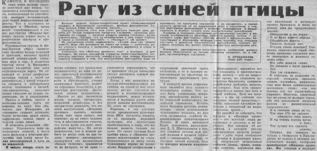 Разгромная статья о «Машине времени» в «Комсомольской правде»