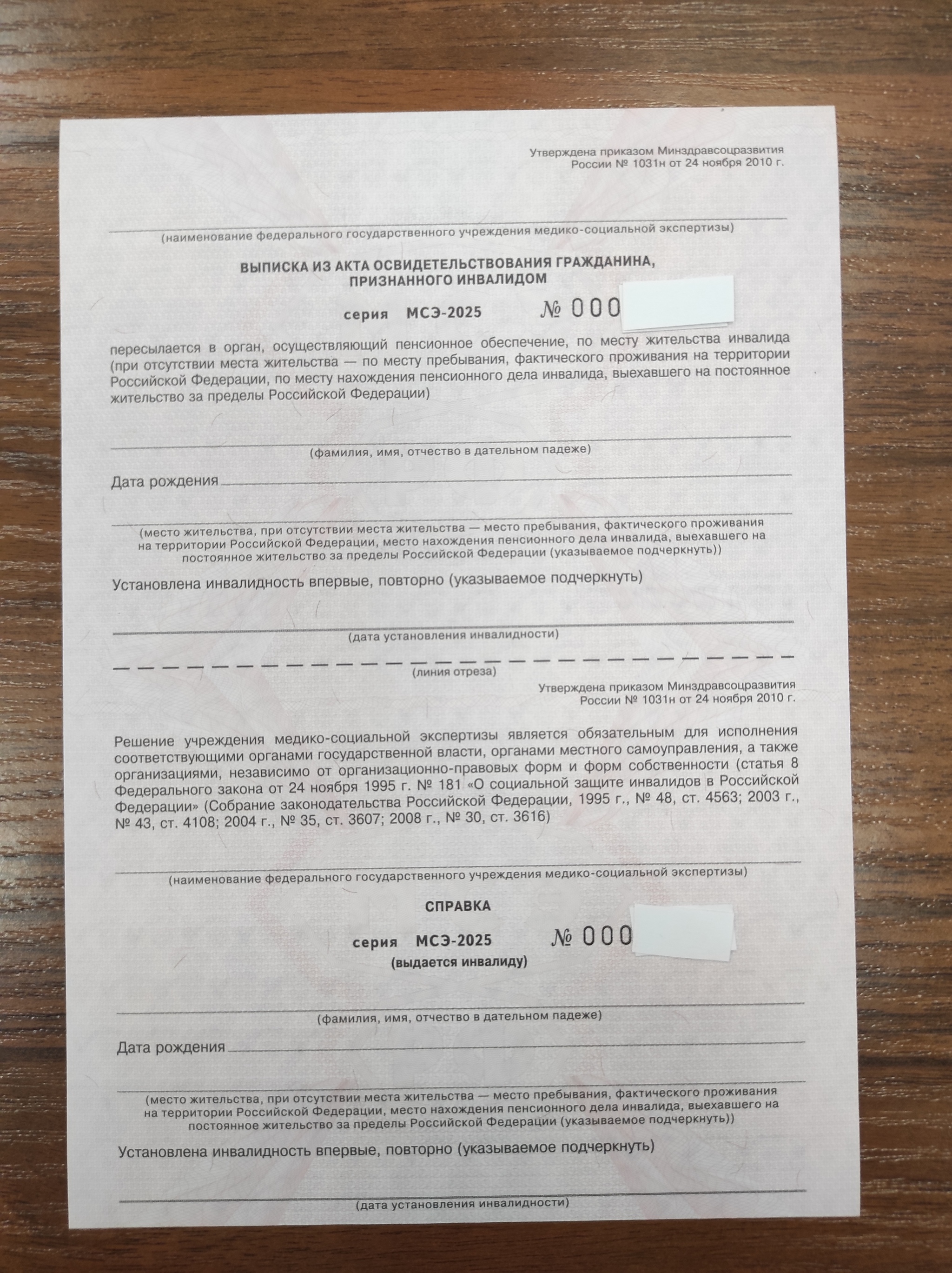 С 1 марта 2026, в соответствии с приказом Министерства труда РФ, "розовый" бланк справки об инвалидности прекращает своё существование. По заявлению граждан будут выдаваться справки подтверждающие факт установления группы инвалидности на листе А4, заверенные цифровой подписью.