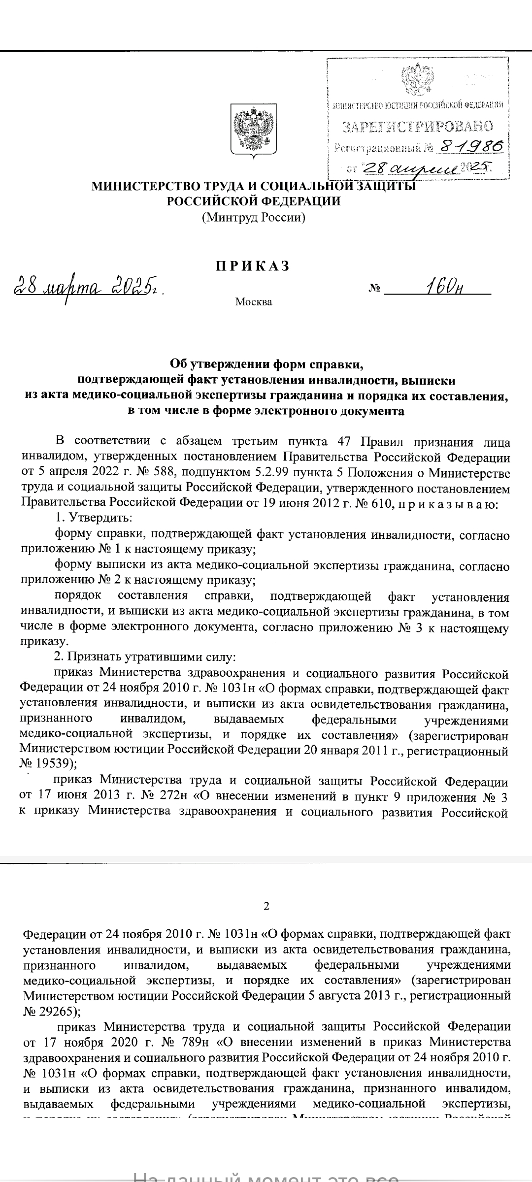 Данный пост носит информационный, предупредительный и познавательный характер до инвалидов, которые проходя очередное переосвидетельствование в марте 2026, не получат желаемую "розовую" справку об инвалидности.