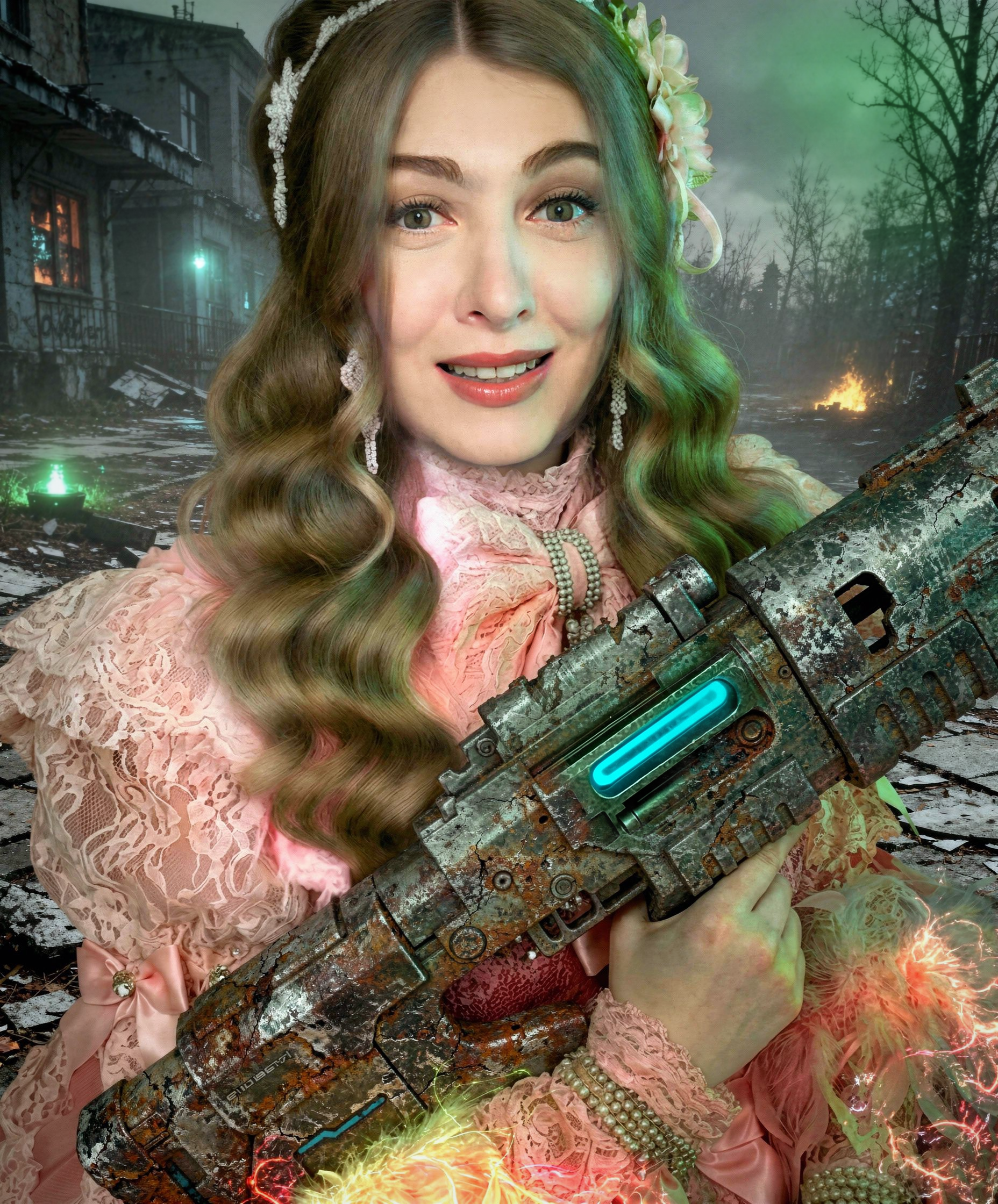Она стояла посреди Дикой территории, в трёхстах метрах от скопления «трамплинов». Розовое платье - именно розовое, цвета детской жвачки, с рюшечками, будто из каталога для выпускного бала. Белые туфли на каблуках. На каблуках, мать его, в Зоне, где один неверный шаг - и гравитационная аномалия выворачивает тебя наизнанку.