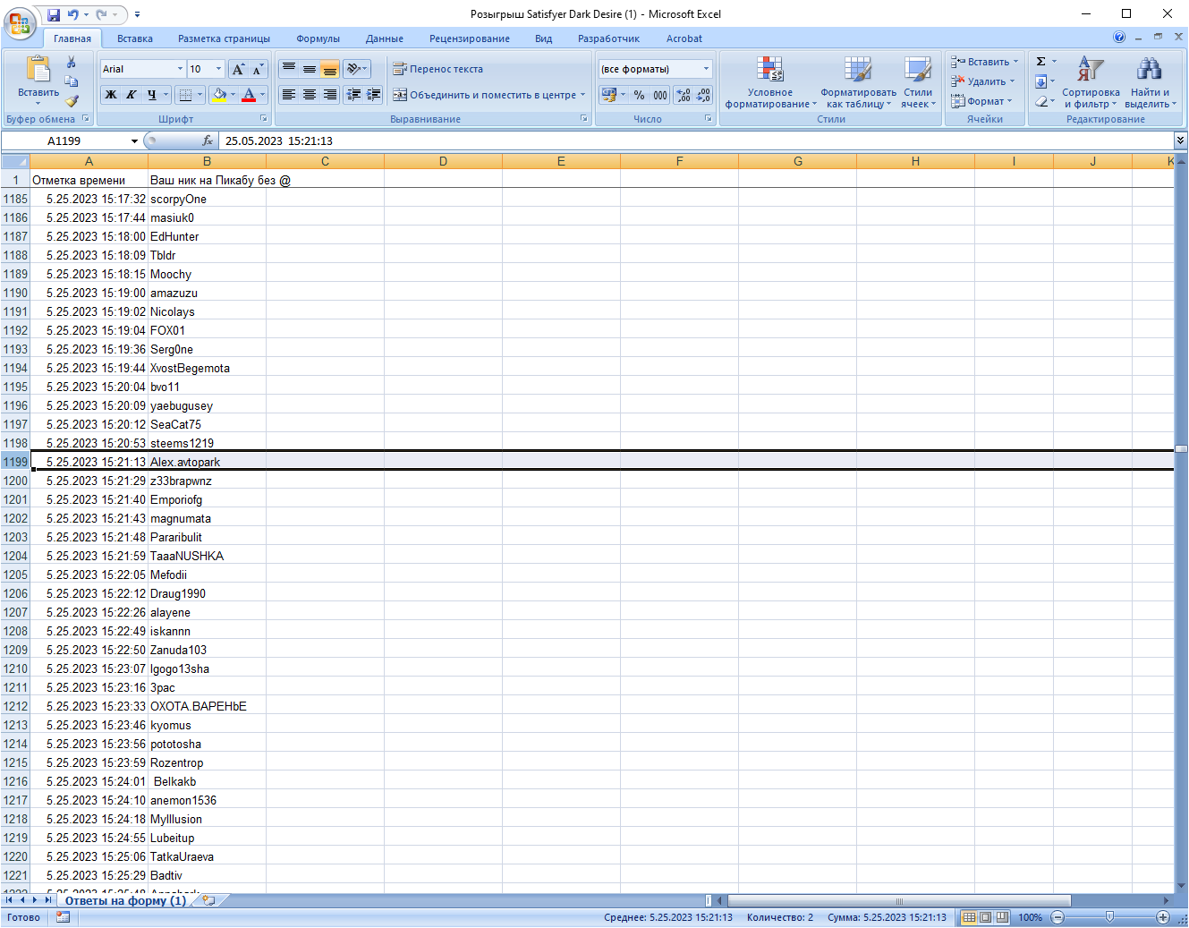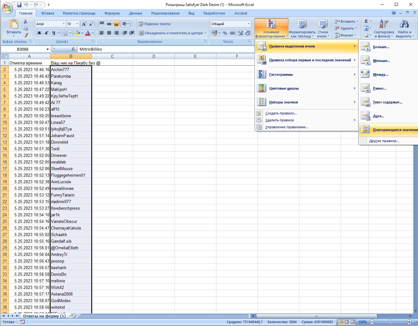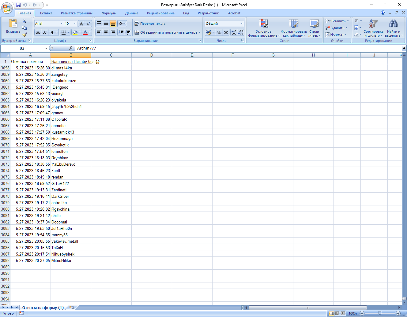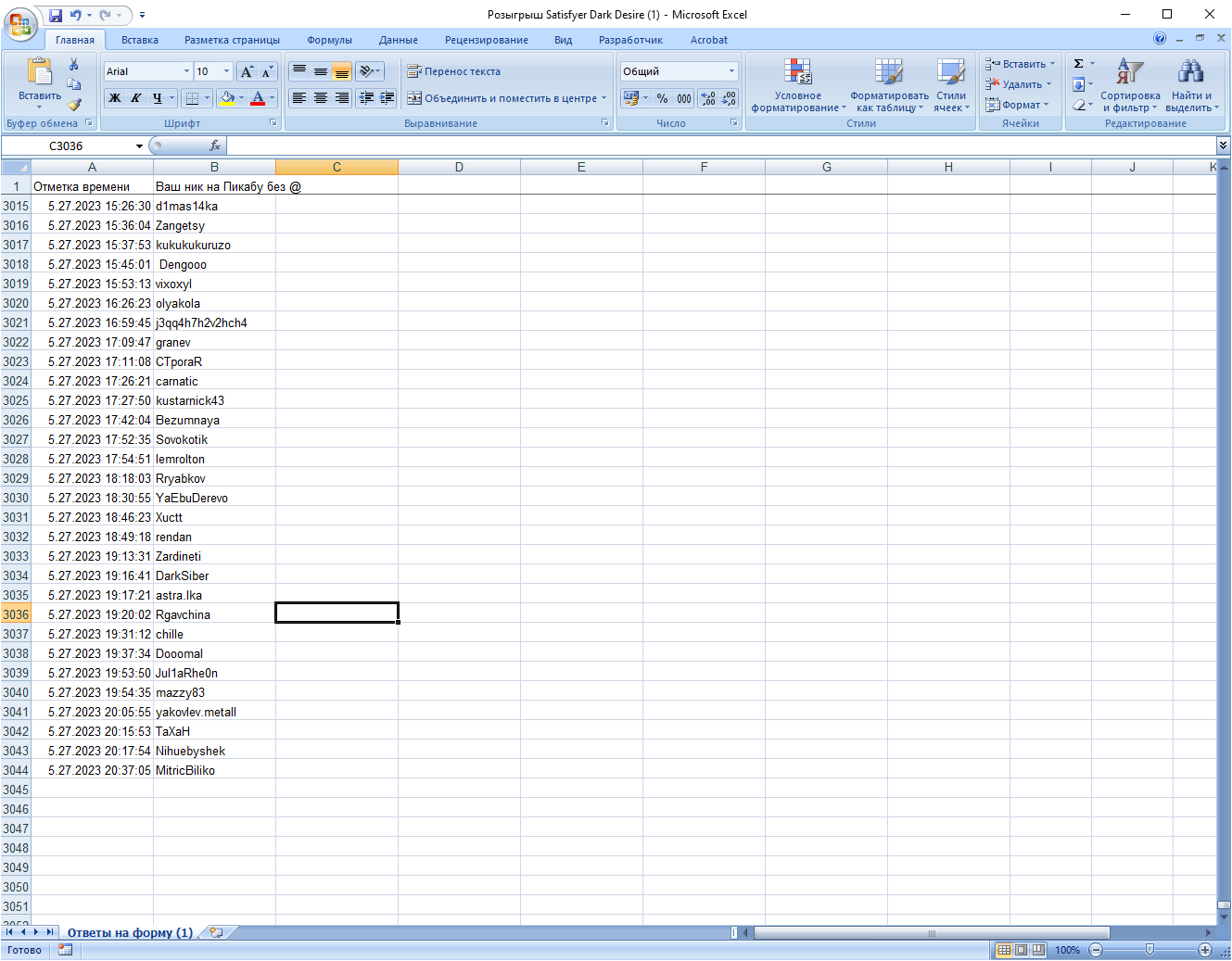 Изначально получилось 3087 участников. На всякий случай - в строке 1 всякие рабочие моменты типа "ваш ник на Пикабу".