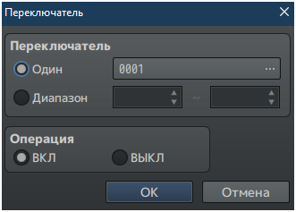 При выборе переключателя открывается окно, очень похожее на окна выбора переменной – здесь точно так же можно увеличить их количество до 5000 штук, которые так же заведены заранее, и задать переключателю название для удобства использования при разработке. Название так же не используется игрой и не видно игроку, и существует исключительно для разработчика, а движок работает с его ID-номером.