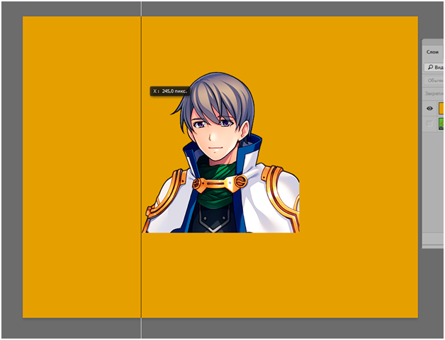 Итак, мы хотим изображение перетащить в левый угол. Для этого нам нужно выяснить координаты левой крайней точки самого рисунка, чтобы он у нас не уехал совсем за экран. Вернемся в фотошоп и воспользуемся направляющими.