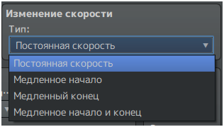 Поле «Изменение скорости» предлагает нам на выбор 4 варианта перемещения – с ними тоже все просто и ясно по названиям.
