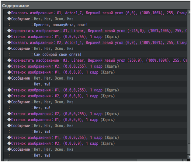 Т.е. НПС или герой произносят фразу, становится серым, оппонент становится обычным, произносит фразу, становится серым и так далее. Код выглядит сложно, но писать подобное просто – создаешь один шаблон, дальше копировать-вставить в нужных местах, главное с номерами картинок не ошибиться.