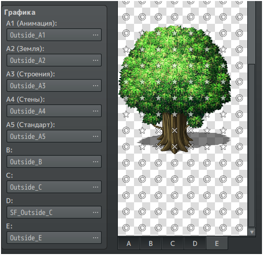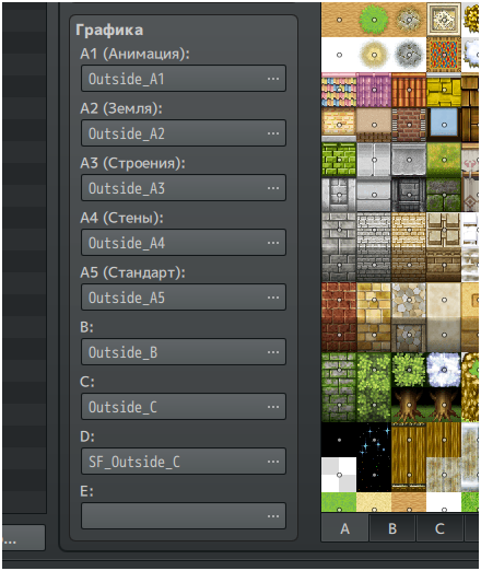 С листами для вкладок от В до Е все просто и понятно. Но, как же быть с хитрой вкладкой А? Ох, уж мне эти автотайлы. Сейчас будет сложно, напрягите все, что можно напрячь!