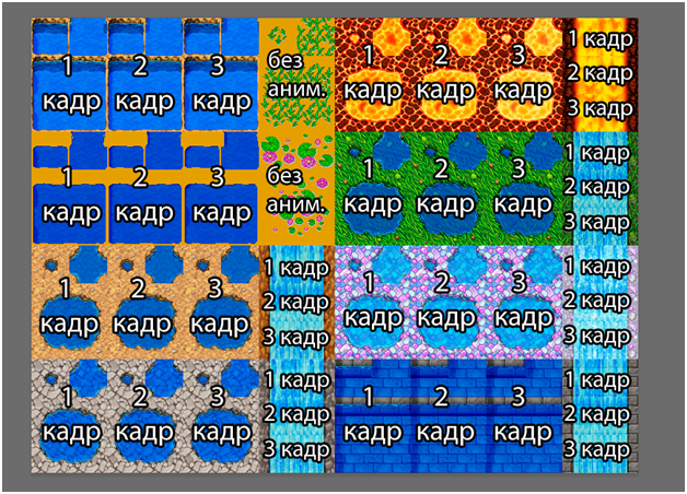 3 – прочие анимированные автотайлы. Горизонтальная прокрутка кадров