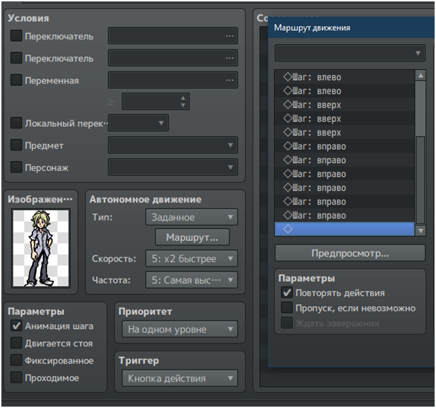 И если вдруг, нам придет в голову сделать ходящую по карте дверь, то, проставив маршрут, будто это персонаж, мы увидим в игре следующую картину: