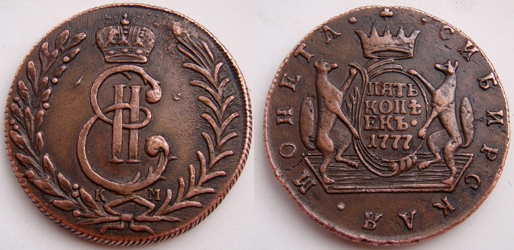 Был и у меня такой. Были и более ранние, что изображено - уже не вспомню. Самой ценной был большой медяк 1775 года, несмотря даже на своё отвратительное состояние (номинал тоже не помню). А почему не помню? Да потому что племянник лет 10 назад нашел мой "тайник", отнес в детский сад и ....больше монеты никто не видел.