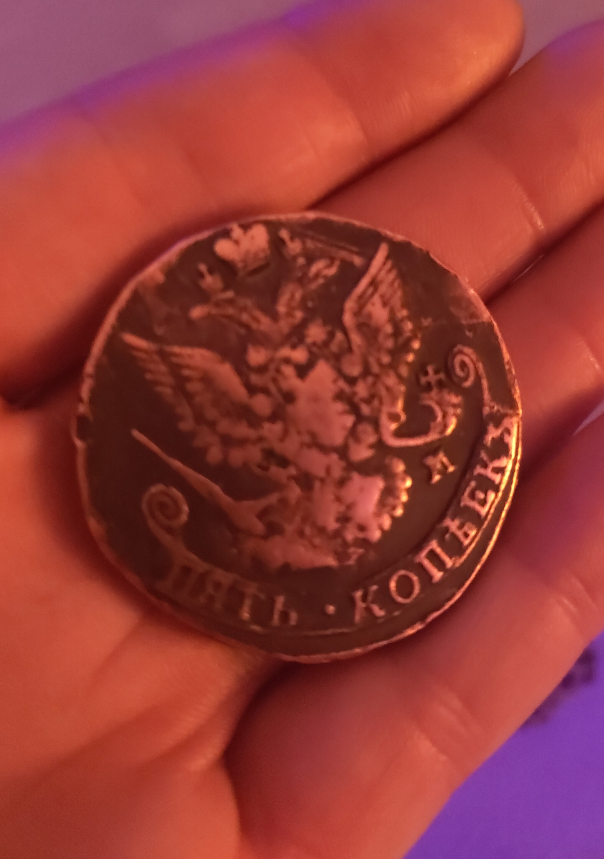 Надеюсь, это символично - монета-труженица, работавшая много лет на благо российской экономики. Возможно, кого-то это удивит, но именно такие пятаки составляли половину всей денежной массы времени Екатерины II и были главным средством денежного обращения в стране. Каждый из этих пятаков много-много раз был в различных торговых операциях, прошел через тысячи, если не десятки тысяч рук и, в конечном итоге, послужил на пользу стране.