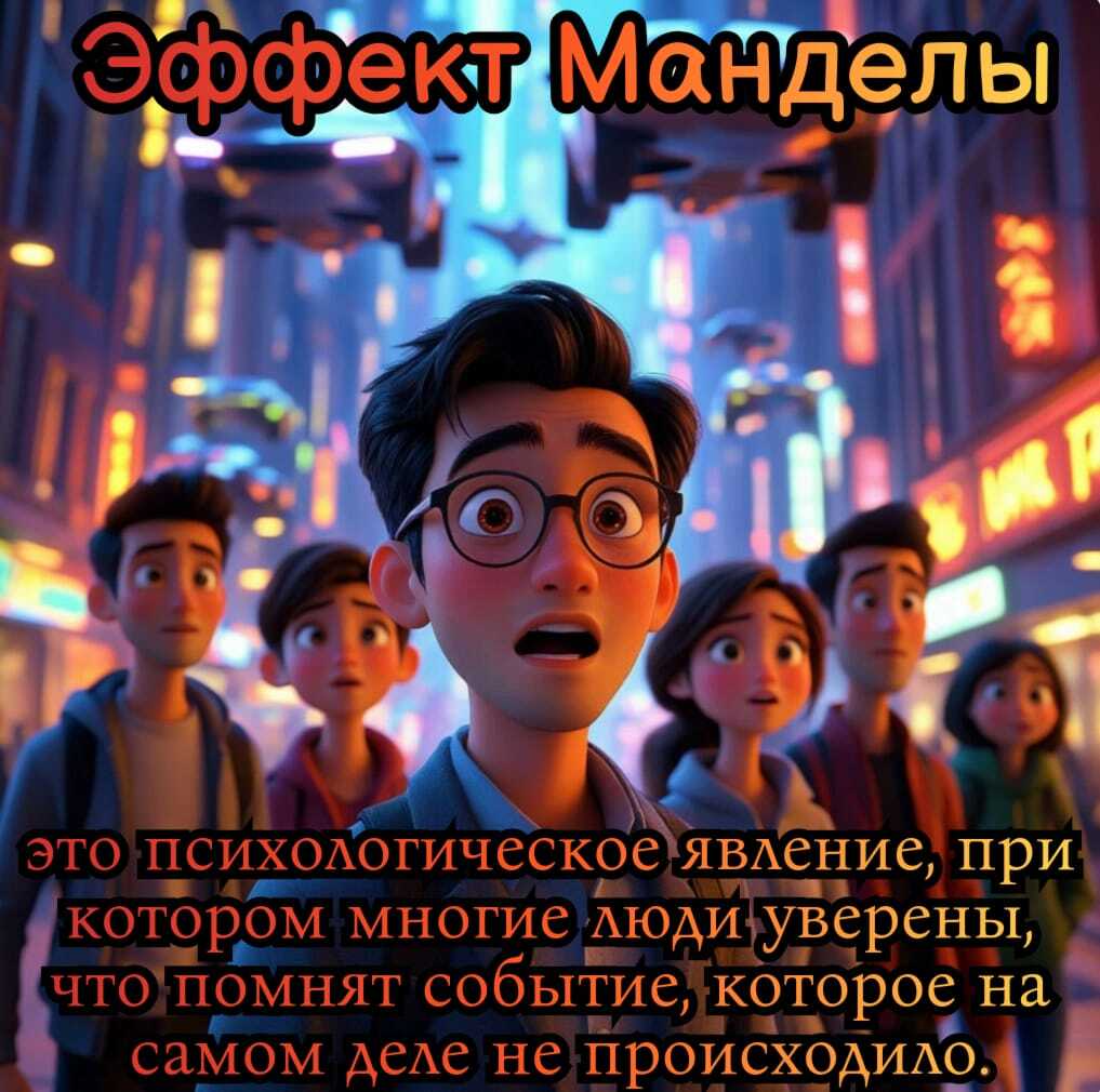 Эффект Манделы — это психологическое явление, при котором многие люди уверены, что помнят событие, которое на самом деле не происходило. Это массовая иллюзия, разделяемая многими, при этом сохраняется уверенность в достоверности ложного воспоминания, несмотря на доказательства против него.
