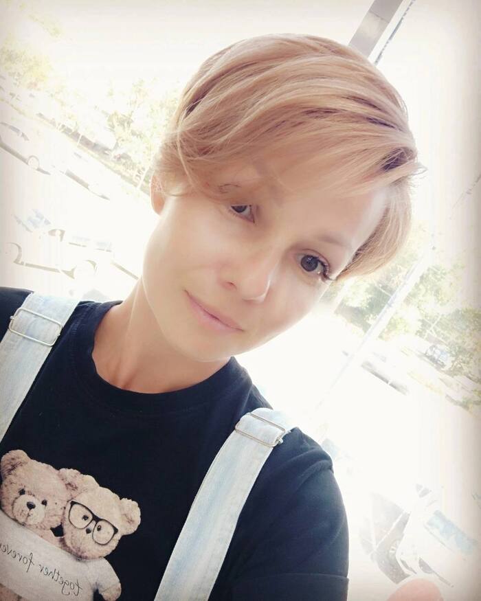 Дальше были обследования, мучительные ожидания и вердикт: трижды негативный, вторая стадия, затронуты лимфоузлы. Химиотерапия, операция, лучи. О своем диагнозе я почти никому не рассказывала, не хотела, чтобы меня жалели. На химии продолжала работать, вела в университете пары, мне разрешили вести занятия онлайн, что сильно облегчало мою жизнь. Я думала, мне будет стыдно ходить лысой, заказала парик, но по итогу надела его один раз для фотографии на водительское удостоверение. Я приняла факт, что я лысая, и мне норм. Главное что живая…