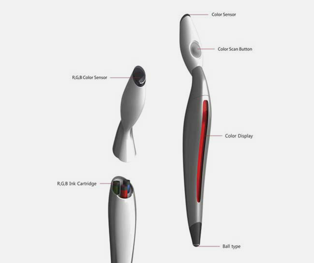 Color Picker Pen — концепт корейского дизайнера Джин-Сун Парка. С помощью ручки можно «отсканировать» любой цвет и использовать его в рисунках. Чтобы ручка определила цвет, нужно приложить её к предмету (это может быть всё что угодно — от фруктов и овощей до одежды и мебели), сканер проанализирует его и передаст команду RGB-картриджу в ручке, который смешает нужные чернила так, чтобы получился заданный цвет. Задача концепта — помочь художникам создавать более живые рисунки.