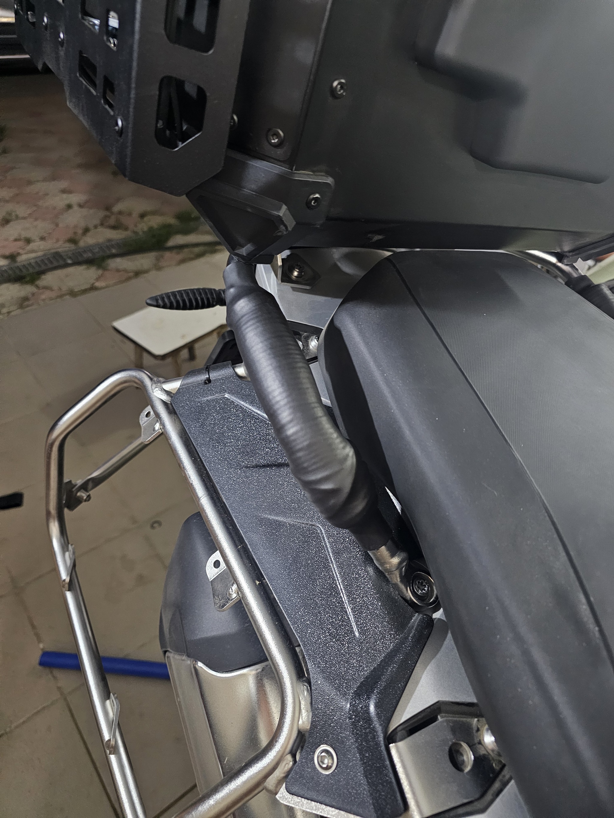 Держаца на моте r1200gs пассажиру можно только за водителя или за трубы штатной багажной системы диаметром 16 мм. Перчатки не помогают, мозоли на нежных женских руках возникают за 100 км. пробега.