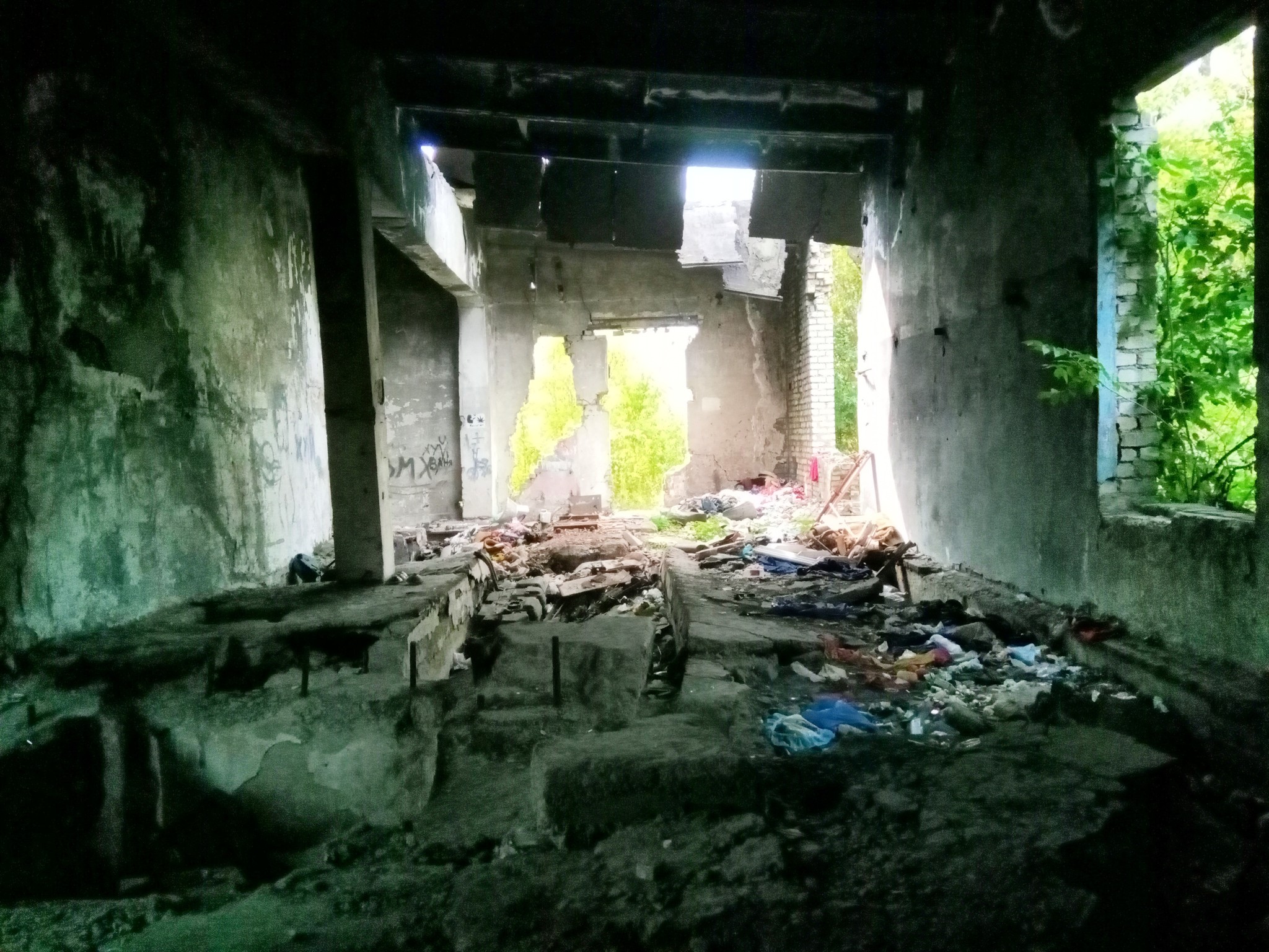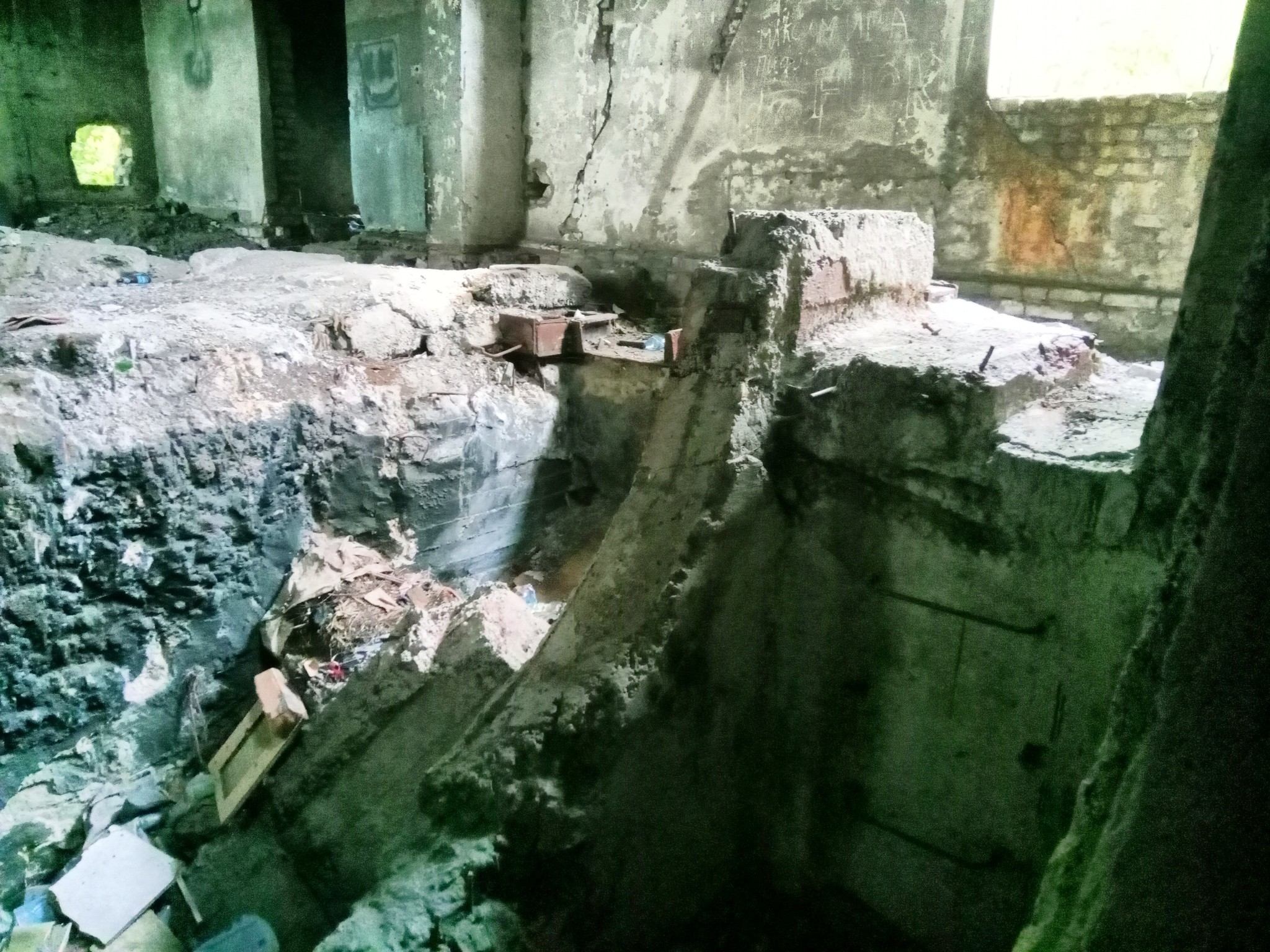Заваленная мусором яма на переднем плане - это устье обводного вентканала, которое металлическим коробом соединялось с каналами основного и резервного вентиляторов.