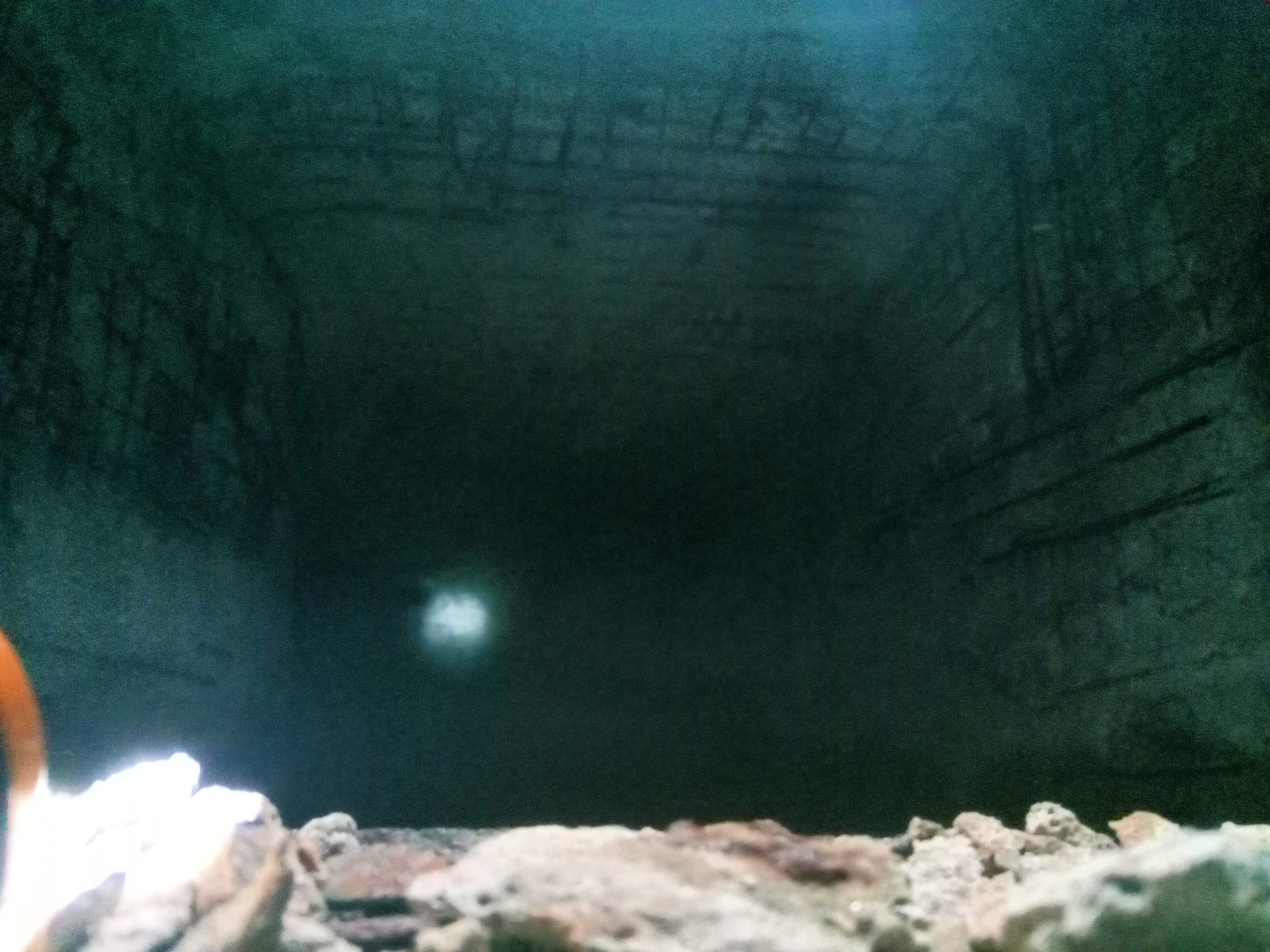 Вентканал, идущий из всасывающей будки, заканчивается прямо над нами и в данный момент перекрыт лядой. Но сфоткать его не получилось, так как мой телефон наотрез отказывался фокусироваться в темноте, а мощного фонаря у меня нет.
