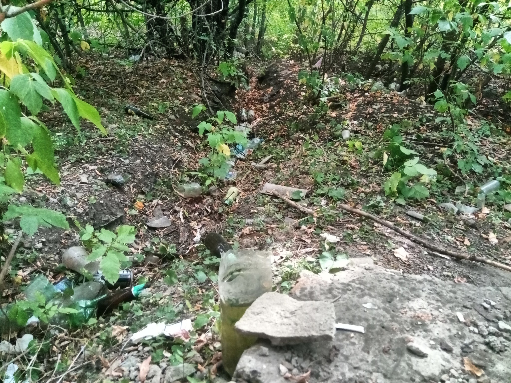 Видны следы деятельности металлистов - уходящая к стволу траншея: