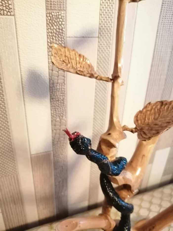 Хотел бы пояснить... Стебель и змея вырезаны из цельного дерева.