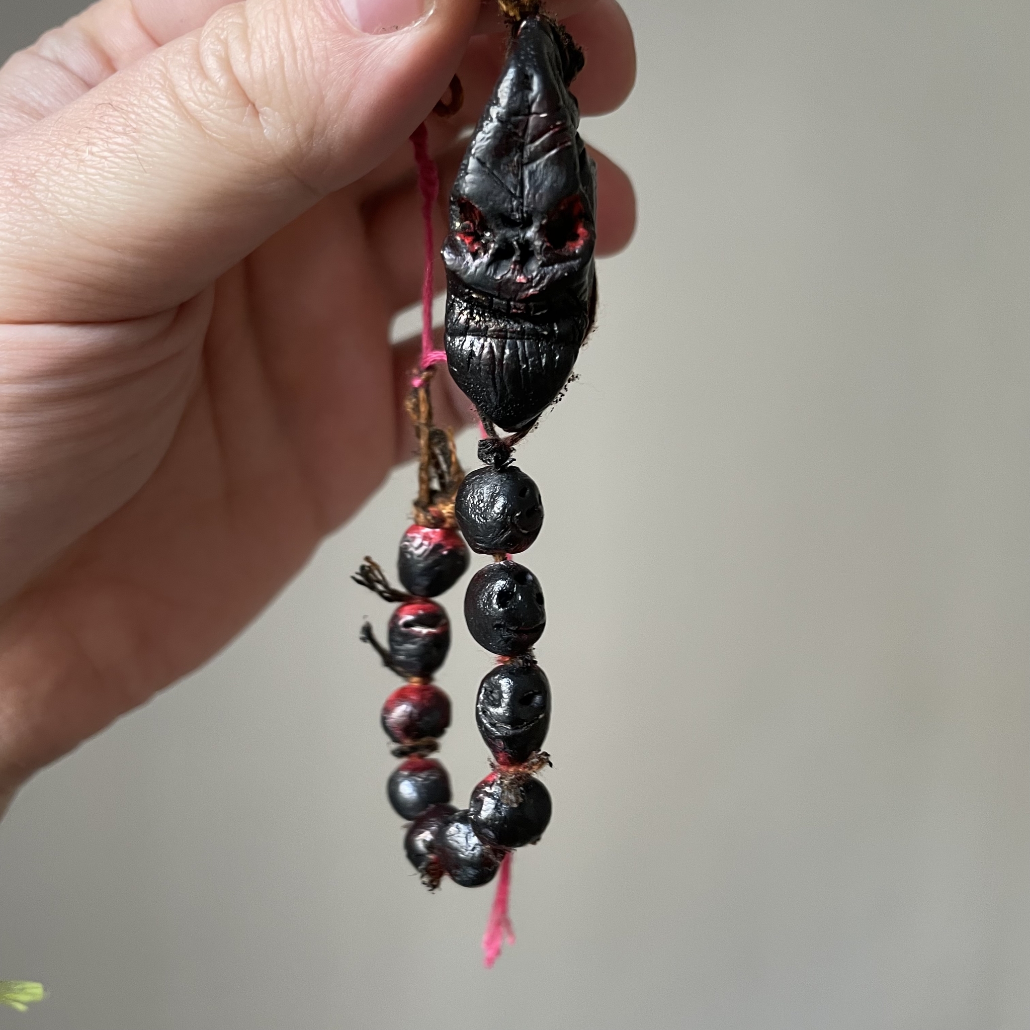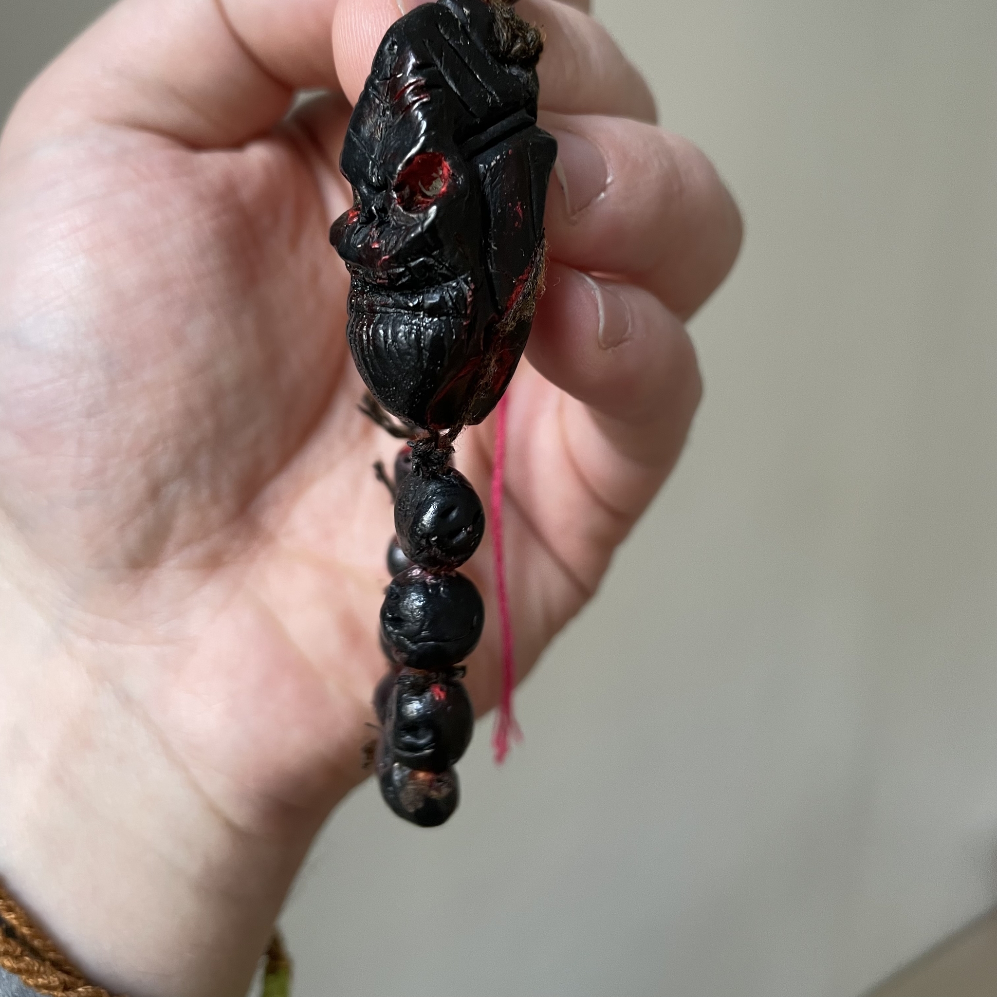 Полимерная глина, остатки краски в балоне, красный маркер перманентный, нитки синтетика вилюровые (вроде как-то так), свободный час времени в общем и целом.