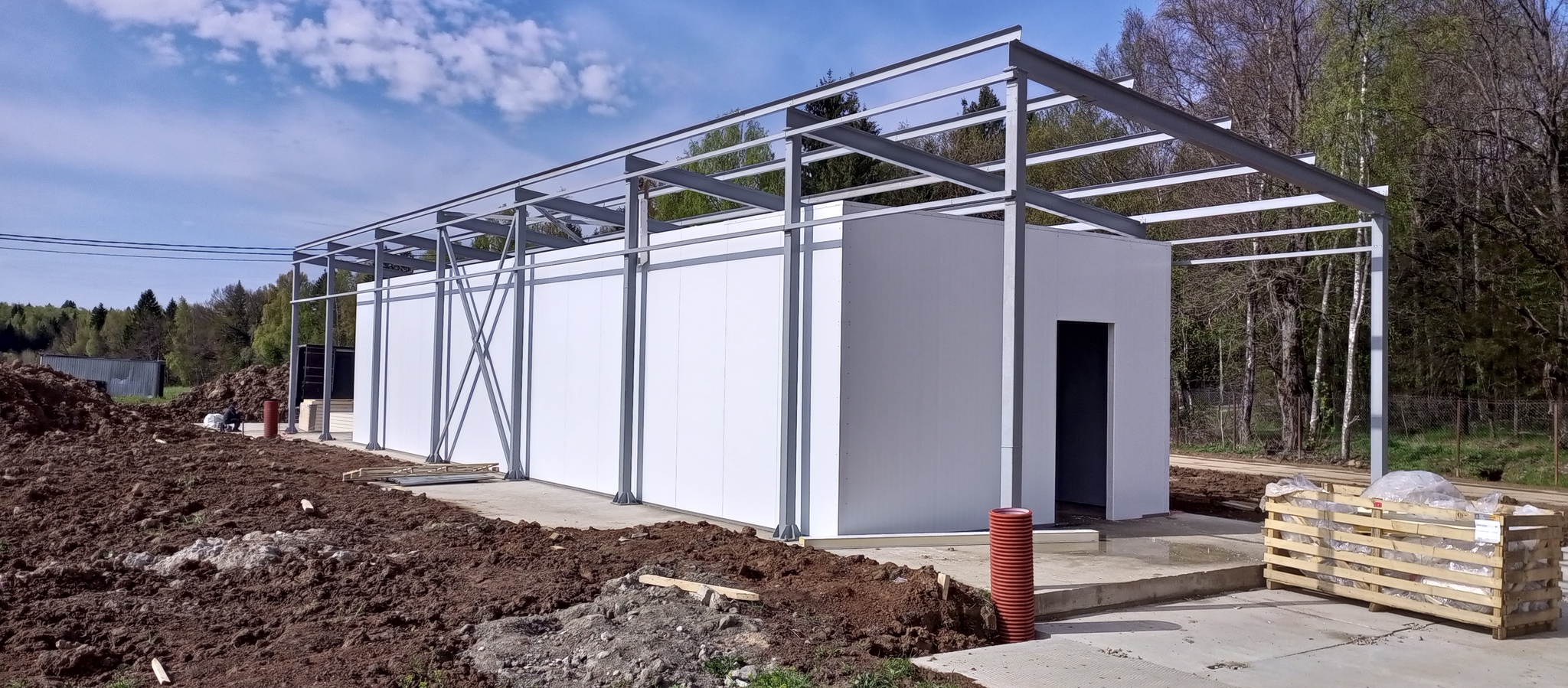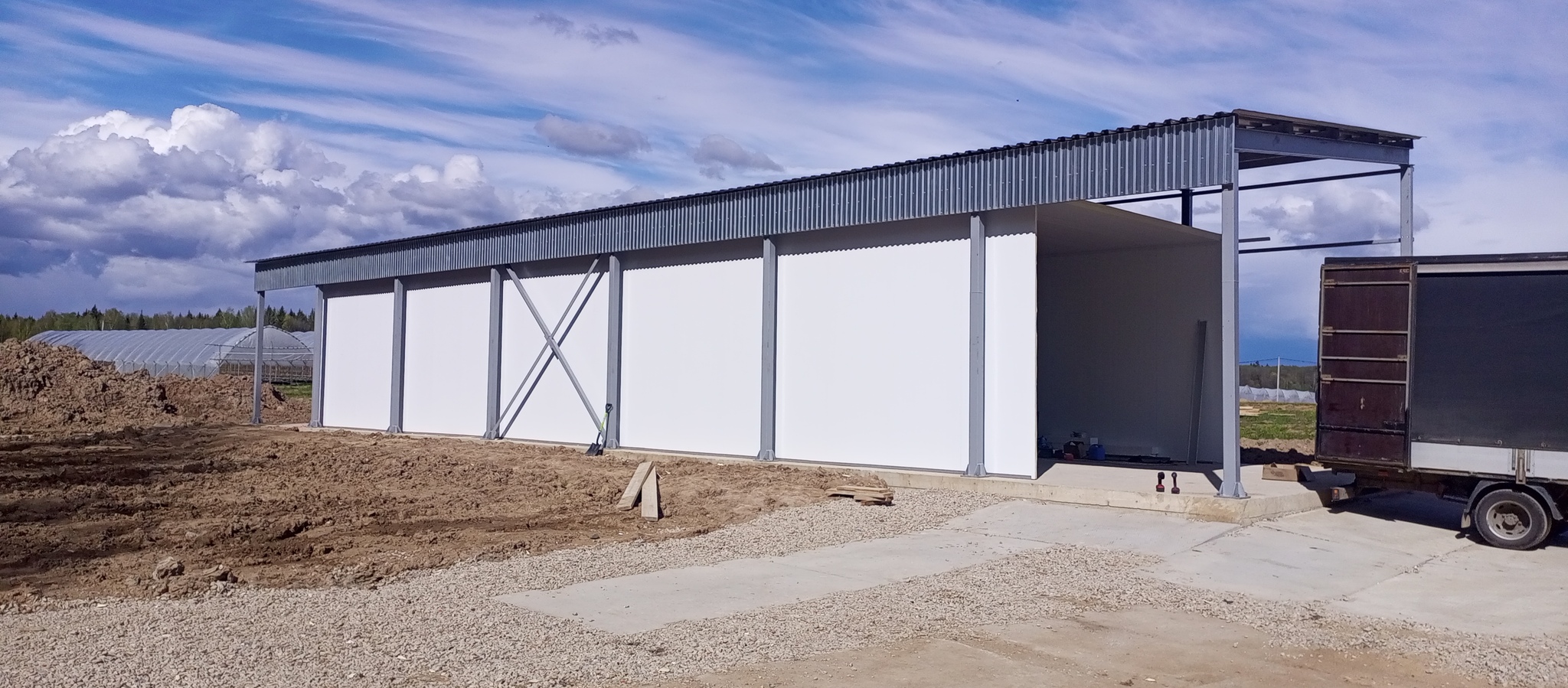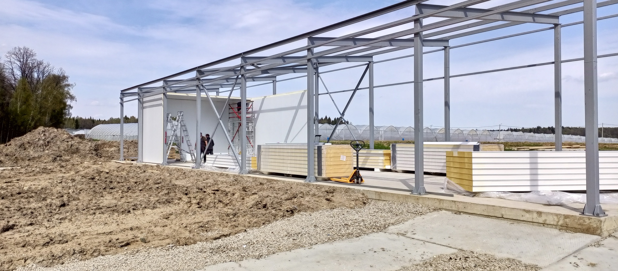 Подвезли пачки сендвич-панелей. 4 метровые на стены и 6 на потолок.