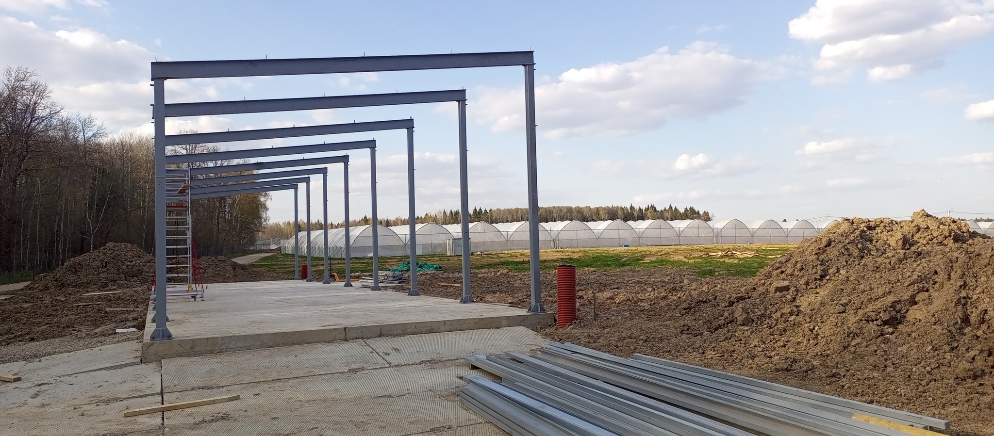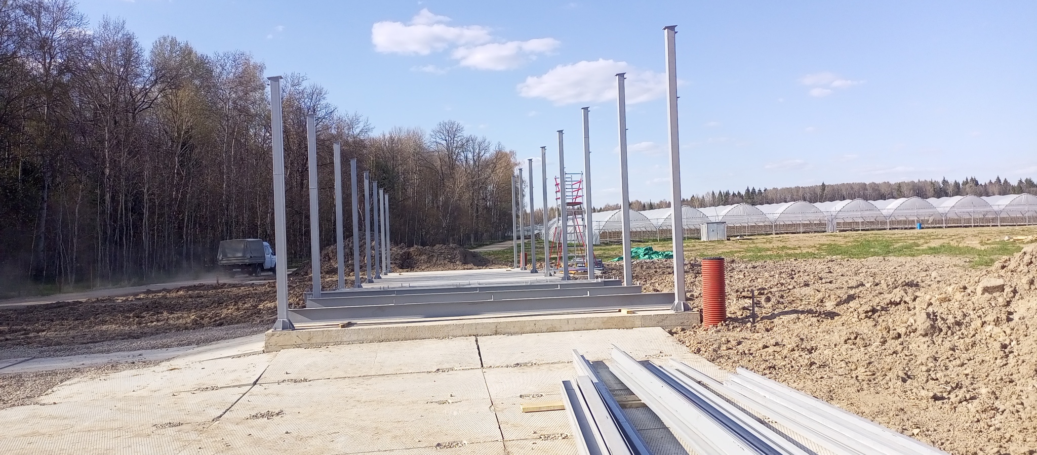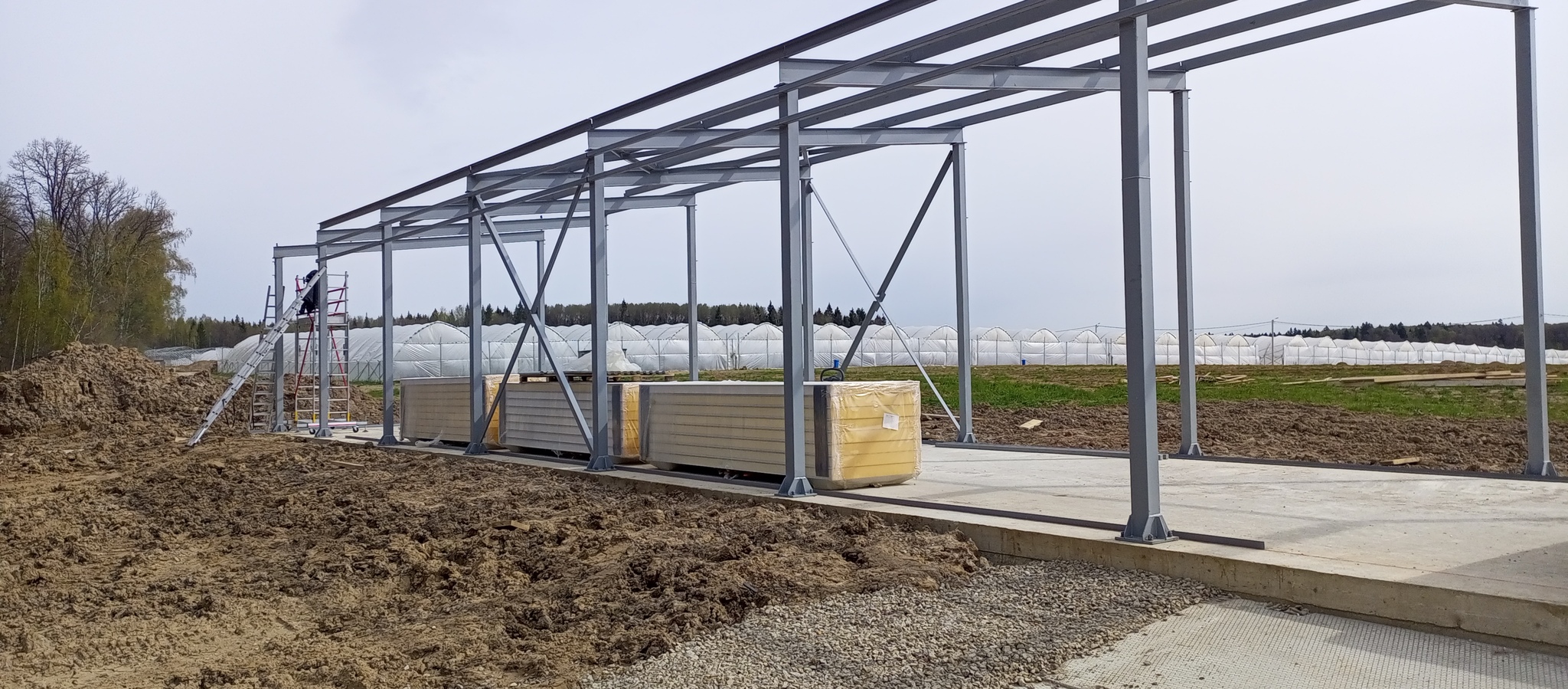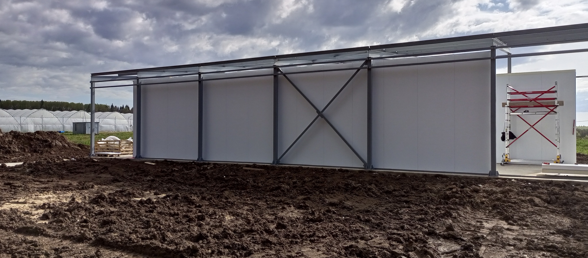 Подвезли пачки сендвич-панелей. 4 метровые на стены и 6 на потолок.