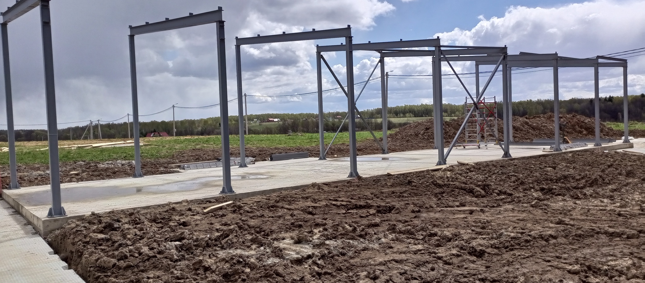 Все начиналось с установки опор. Каждая из них весит примерно 120 кг. Их всего 16 штук.