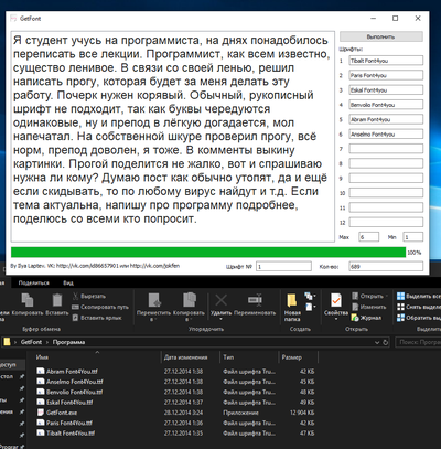 Вместе с exe есть шрифты, установите их и все должно заработать) Слева вы можете написать название любого шрифта который установлен на pc и он случайно их перемешает.