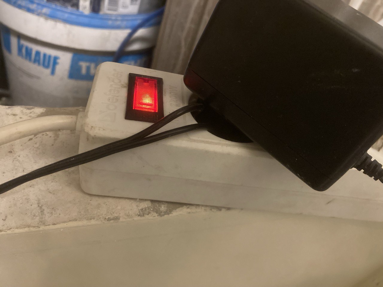 Тройничка нет? О, можно же голые провода сунуть! Ой, выдавил вилку адаптера роутера внутрь. Ладно, если не выключать - не видно.