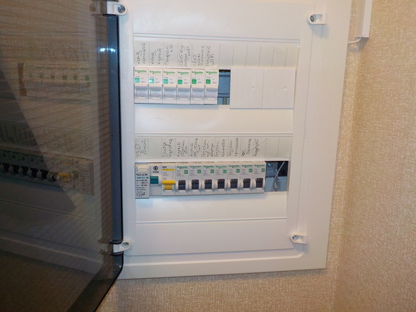 Заходим в кладовку, смотрим на щиток. В моем случае ремонт только закончился, еще не все подключено, в щитке зарезервировано место под доп автоматы и фичи.