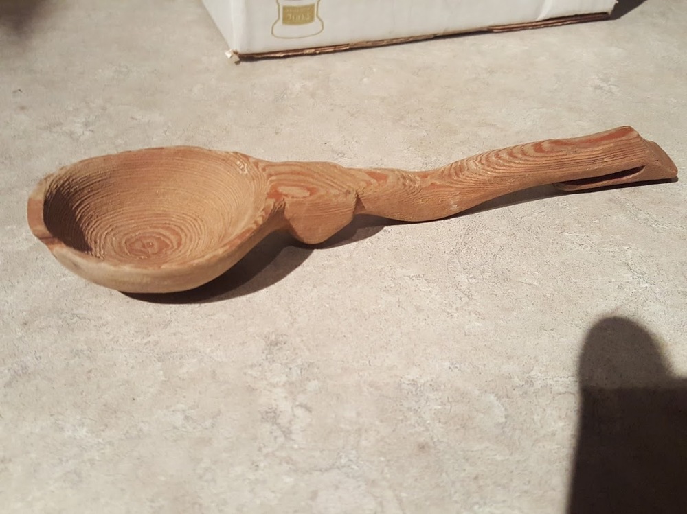 На данный момент все. Теперь нужно подождать пока ложка хорошо не просохнет. Потом убрать по возможности все косяки, возможно нанести узор. Ложке сохнуть еще пару недель.