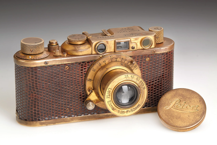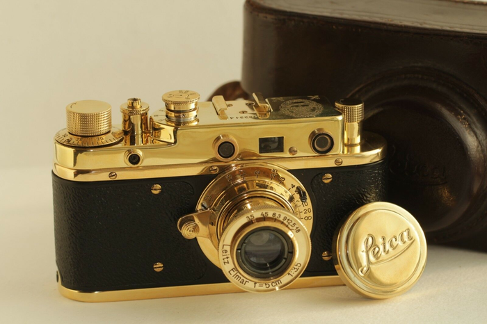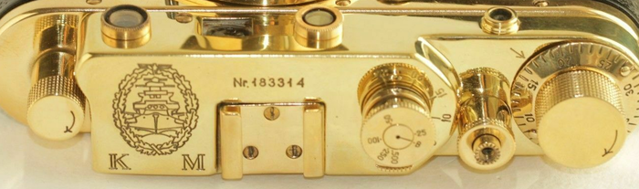 Другой прикол - типичная для таких фэков позолота. Единственные оригинальные фотоаппараты Лейка, которые могли быть позолоченными - это уникальные выпуски Лейка Люксус. Модель А - 95 экземпляров, Модель С - ещё 95 экземпляров, а на базе Лейка D - вроде, вообще от трёх до шести штук. Из них уцелели единицы.