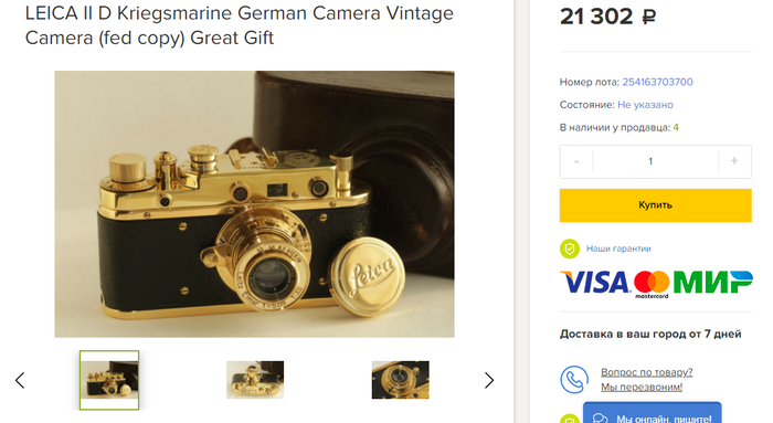 Нашёл угарный лот под названием "Leica II (D) Kriegsmarine немецкая камера винтажная камера (копия из фэд) Крутой Подарок".