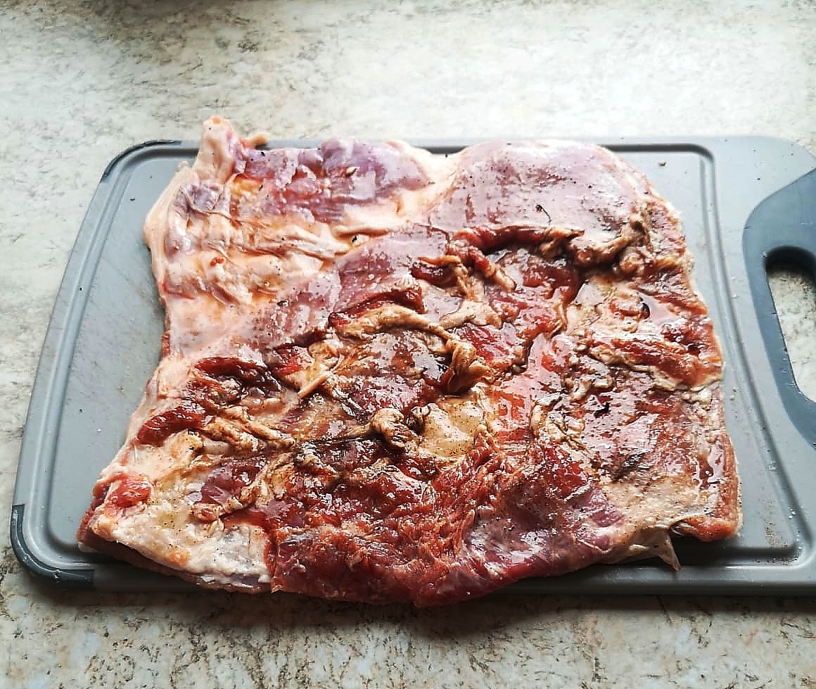 По процессу решил сохранить максимум сочности и прослойки после охлаждения.... Поэтому за за основу первой части термального процесса выбрал Бекон домашний (рецепт) .