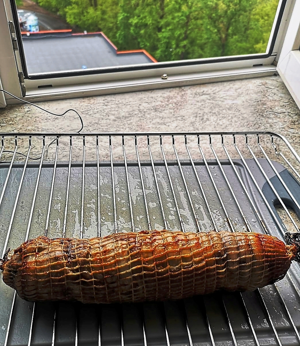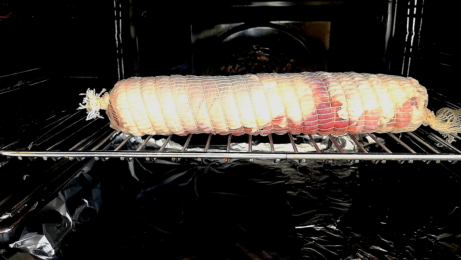 Вот после того, как поместил рулет в духовку и вставил термометр, решил работать в два этапа (электрический.... т.е. раз в минут 30 на несколько секунд открываем, чтобы не варилось):
