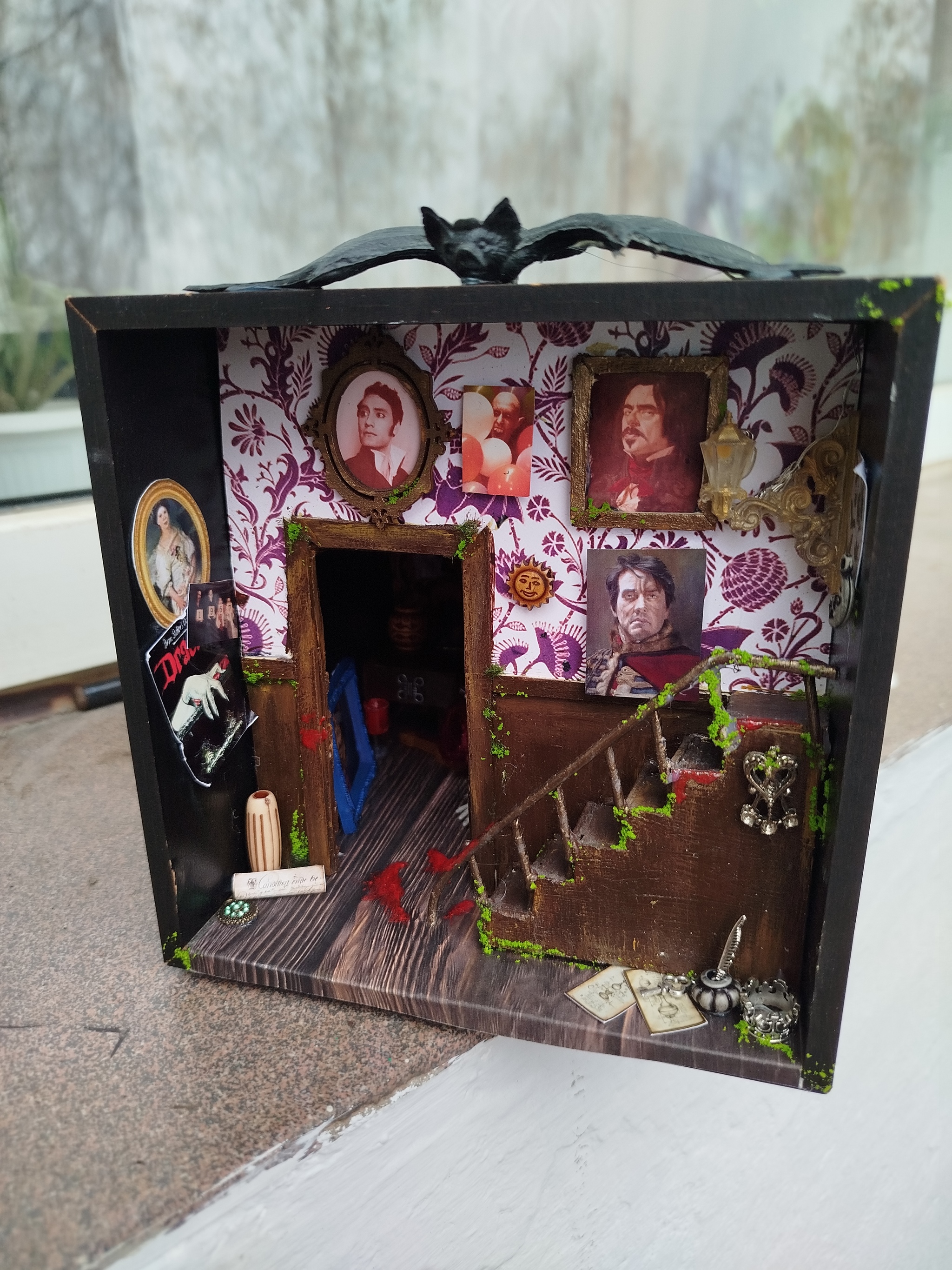 Домучала я всё-таки румбокс с "Реальными упырями". Добавила мелочи и деталей и совсем забыла найти подходящую курицу для Петера 🤫