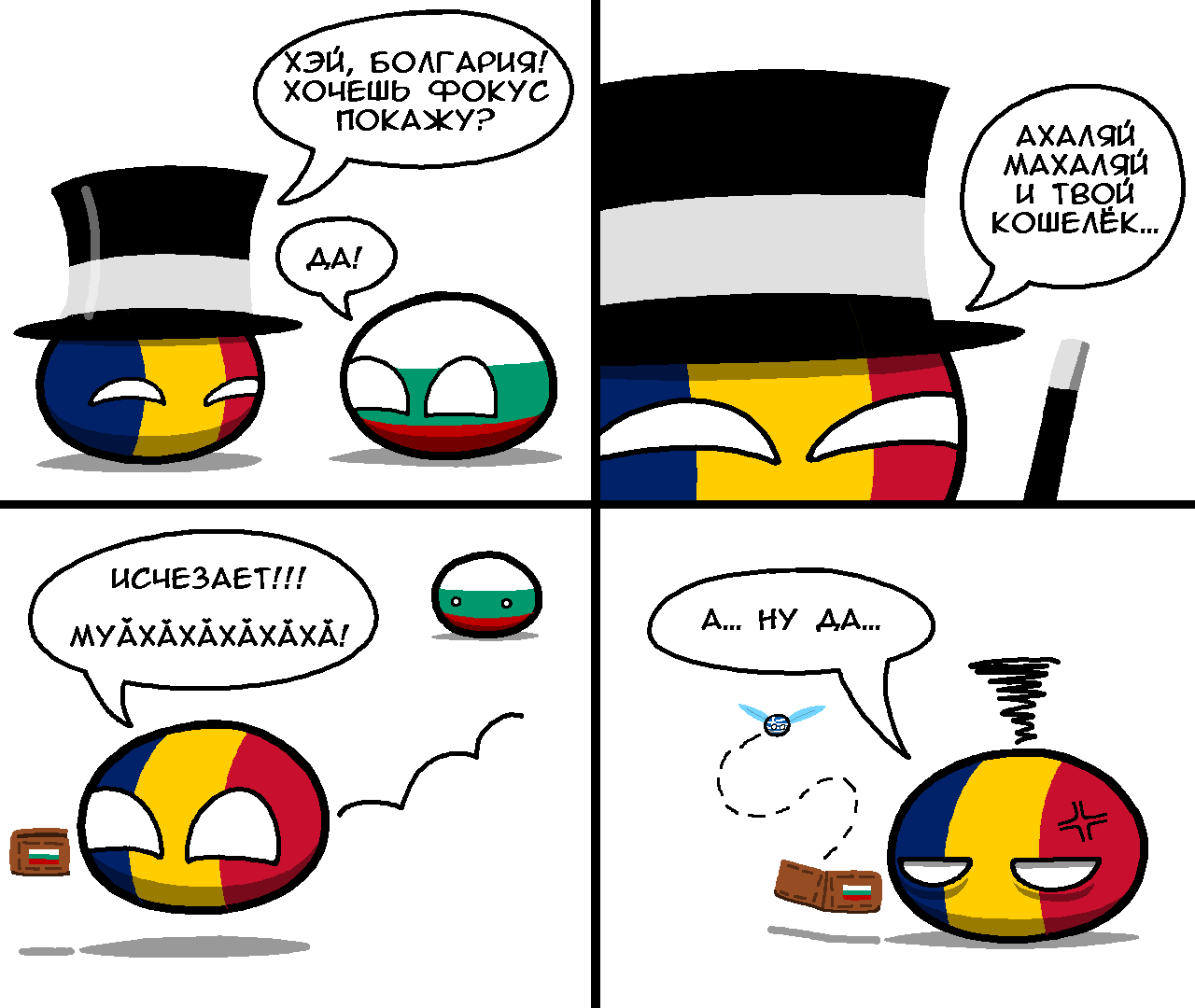 268 SCDcountryballs 5 месяцев назад Countryballs Серия Countryballs Universe Румынский фокус Орижинал псто. Countryballs Комиксы Картинка с текстом Румыния Болгария Греция Фокус Reddit (ссылка) 17 1 Ещё 0