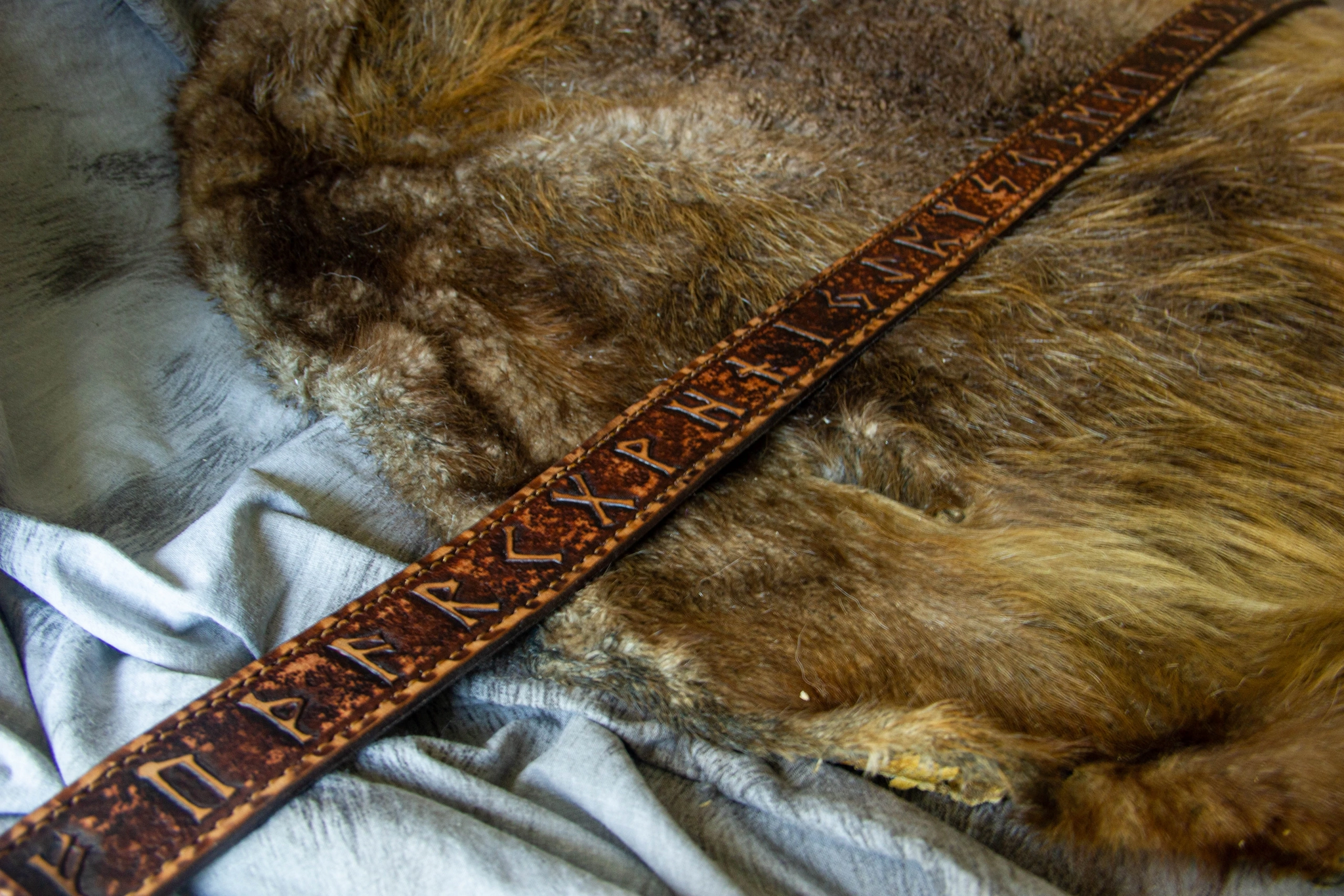 ✅На ремне изображены все 24 руны старшего футарка и на окончании паутина Вирд (матрица судьбы) в технике холодного тиснения (карвинг).