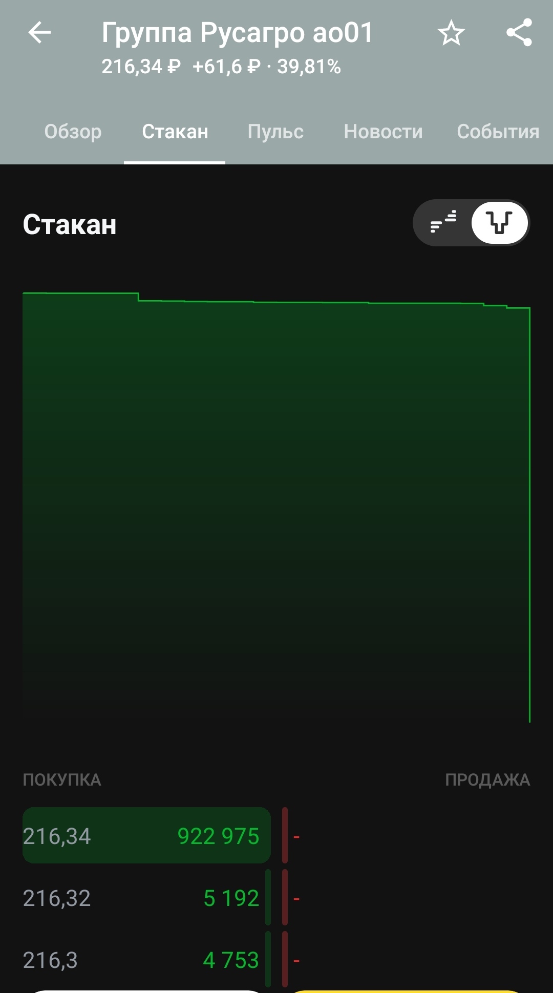 На старте торгов котировки уперлись в планку, заявок на продажу в стакане не было. 🤷♂️