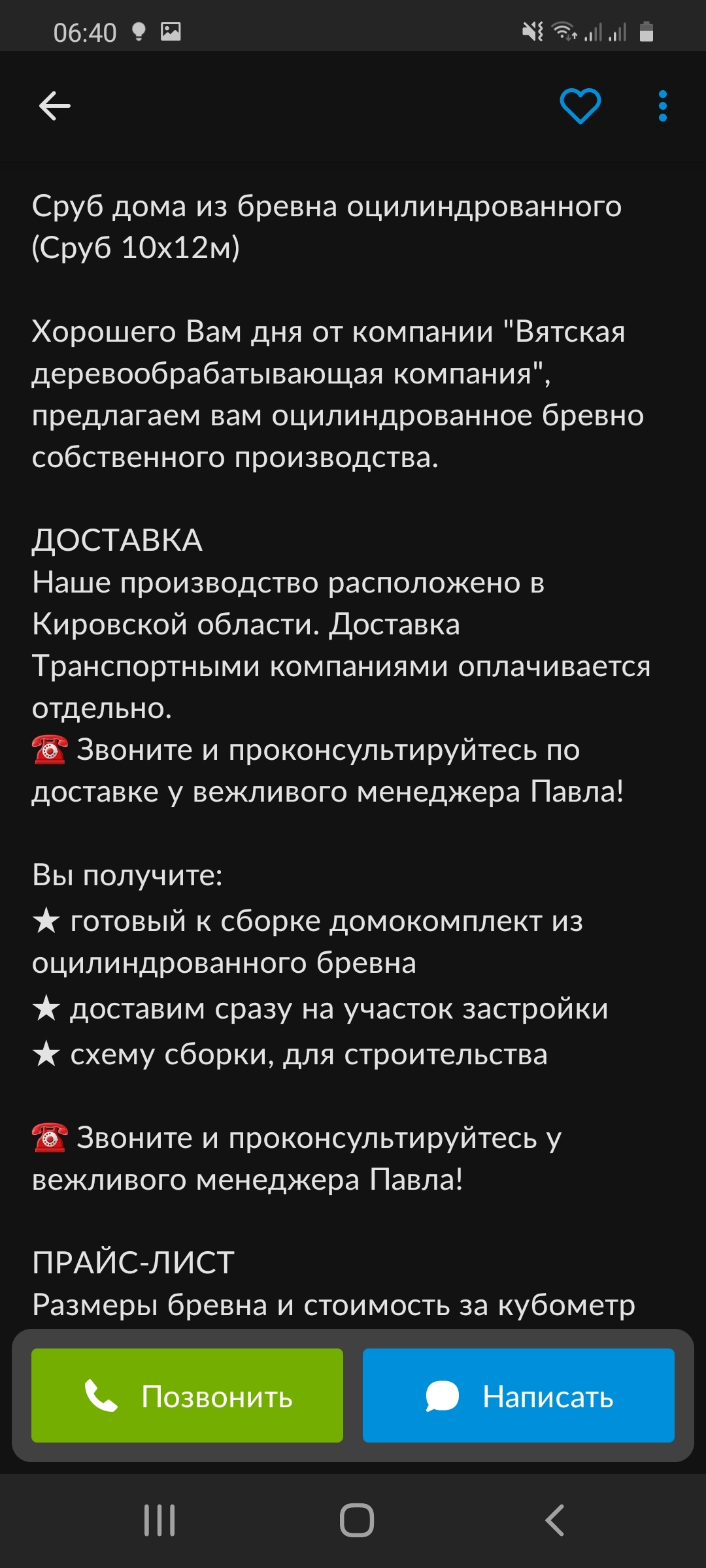 Я купил большой участок под строительство, на участке уже есть небольшой дом 60м2, мы в нём живём и ищем варианты до тепла определиться с конторой которая нам построит дом из сруба который в перспективе останется как гостевой-баня, потому материал бревно или брус. Ищу потихоньку застройщика. Вот какого великолепного менеджера Павла я сегодня нашёл. В объявлении на фото конкретный дом, с конкретными размерами и по фото я не могу определить какого радиуса там бревно. Что я должен был написать чтобы гражданин-продавец мне ответил не в хамской манере? Я им деньги хочу занести, возможно несколько миллионов, а они мне предлагают наверное самому заняться строительством дома. Неужели нельзя более доступно отвечать? В живую мне пару раз в жизни попадались люди которые мне с порога хамят, зато в интернете постоянно такое отношение к потенциальным заказчикам. А теперь викторина - угадайте, у кого я точно не буду покупать домокомплект?)