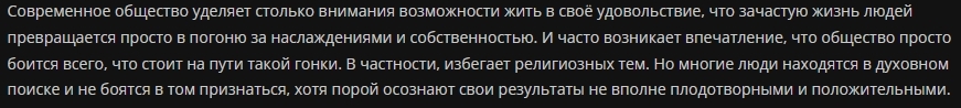 Это первый абзац, в котором они пытаются подвести хоть какой-то базис под идею некого духовного поиска людей. Вполне приемлемое начало. И вот второй абзац: