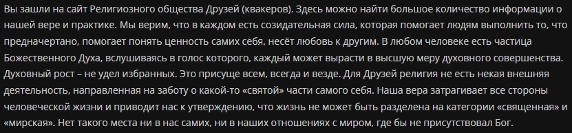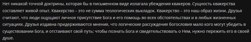 Идею рассказать об этой компании мне подарил один комментатор, отметившийся в комментариях к одному посту. Сначала я подумал, что это была какая-то провокация, так как сразу не нашёл никакой информации об этой организации. Но покопавшись в интернете я обнаружил единственный официальный квакерский сайт, на котором они рассказывают о себе. Это полностью текстовый сайт, никаких видеоматериалов нет. И так, кто эти люди?