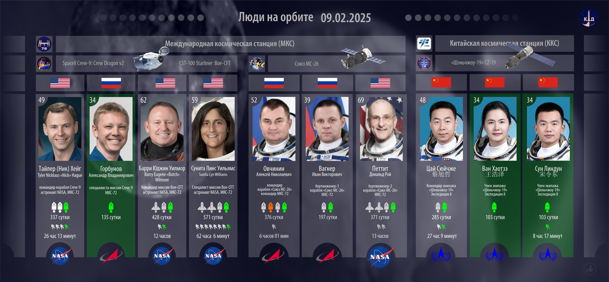 - МКС - международная космическая станция. Экипаж 72 Экспедиции из семи человек.
