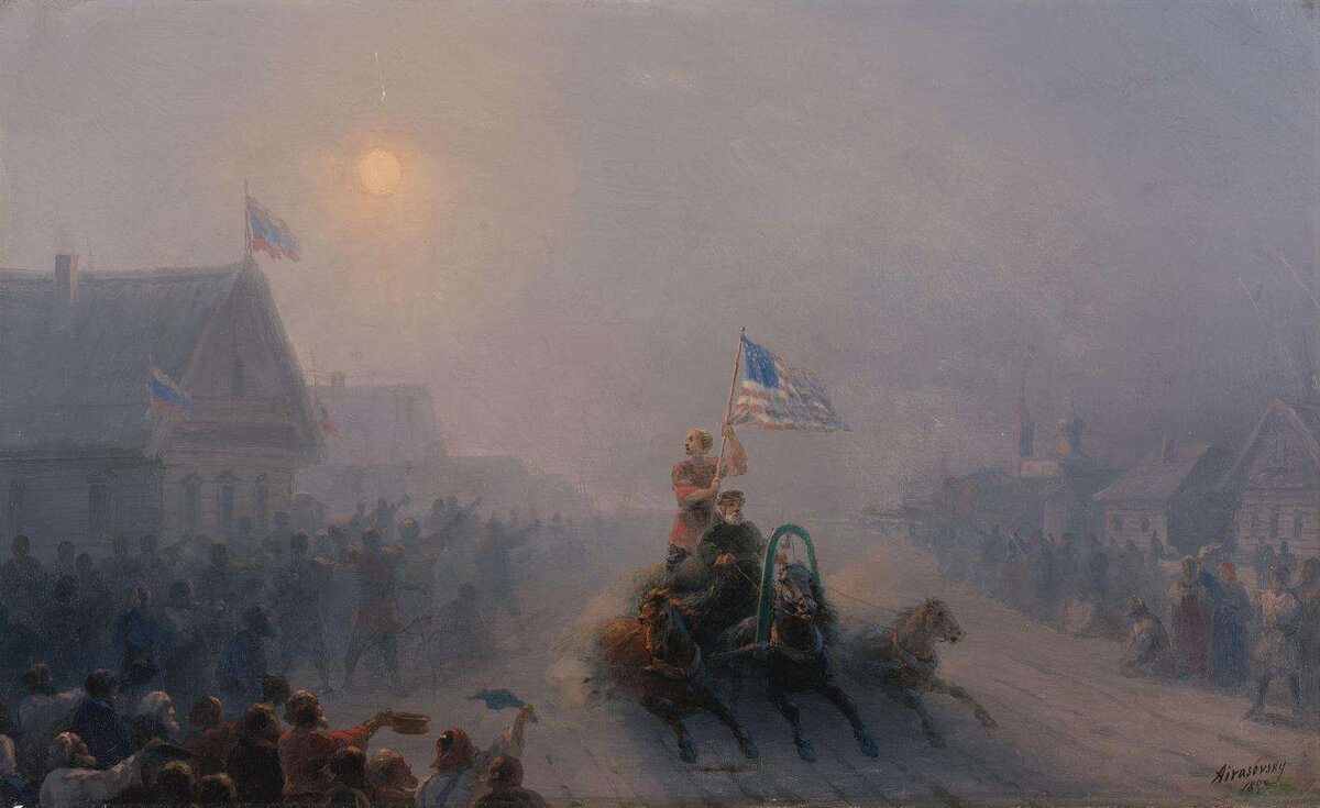 Картина Ивана Айвазовского «Раздача продовольствия». 1892 год. Как вам сани с американским флагом? Неожиданно...