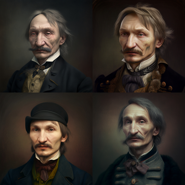 Хочется сказать автору картинок "Да чтоб тебя нейросеть нарисовала!" Лица, во-первых, не слявянские абсолютно, во-вторых идиотская идея, и не смешно. Достаточно посмотреть на прижизненные рисованные портреты или на фото тех, кто жил в конце 19го начале 20го века.