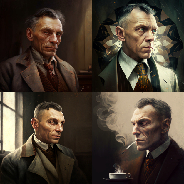 То есть нейросети? Разработчикам нейросети? Мне как пользователю нейросети, который не нарисовал ни одного из представленных портретов, а только дал нейросети имена писателей?