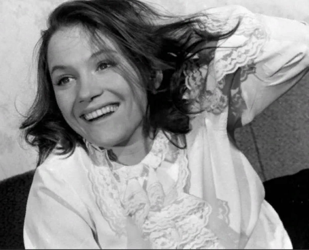 Нина Сазонова в первом отечественном сериале "День за днем" (1971). Здесь впервые в ее исполнении прозвучит песня "Стою на полустаночке"