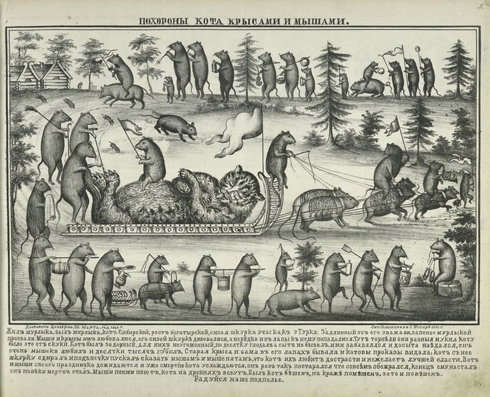 Многократно переиздавалась сатирическая «Сказка о Ерше Ершовиче, сыне Щетинникове» и лубочная картинка «Как мыши кота хоронили».